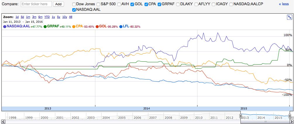 quinto problema: cualquier inconveniente que tenga alguna de estas aerolineas, le va a afectar a LAN, o mejor dicho al precio de la accion.