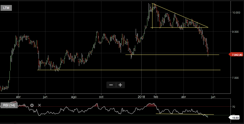 Colegas: Segun System Fibonacci, el papel de LTM, ya no debería caer mas. Desde mañana martes 26 de junio debería comenzar a subir. El precio objetivo lo daré mas adelante.