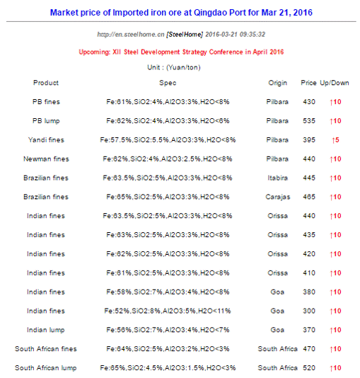 The Steel Index (TSI) is pleased to send you today's Iron Ore Reference Prices, for 21 March 2016. Further information on these prices, together with full specification details for TSI's reference products and additional market intelligence, are provided in the document attached.
