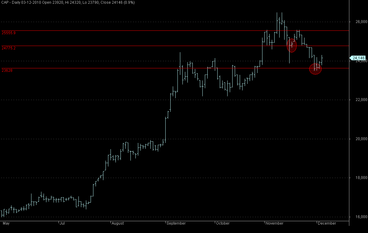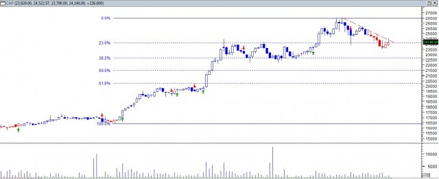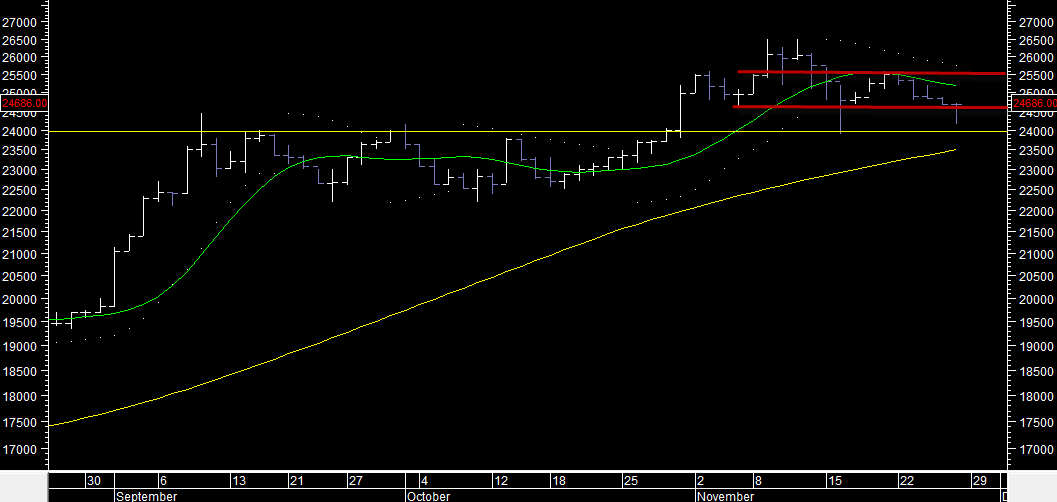 lo que si se logro colocar por sobre 24,000 que fue la recientencia anterior y que debiese actuar como soporte.