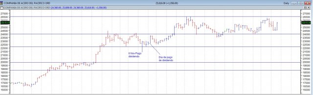 En el grafico adjunte los dias de pago de dividendo del ultimo que se repartio con igual monto de $100.