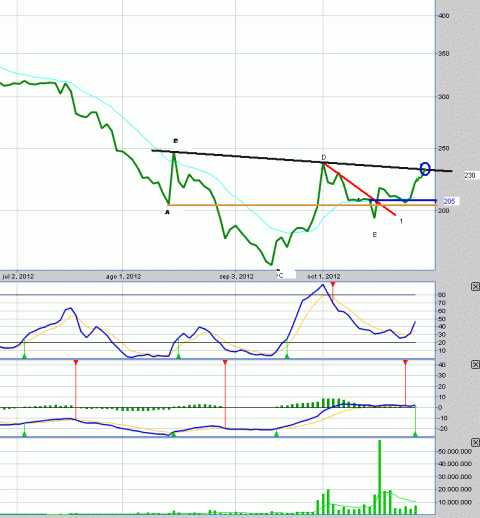 Es decir, como hay distintas estaciones (pausas o correcciones, dentro de una tendencia), creo que si hoy confirma por sobre los 230, la siguiente estación yo la veo cerca de los 250. Eso no más.