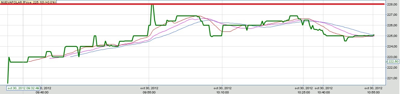 Considerando el Gráfico intraday el papel se ha soportado 4 veces en los $228 y rebota ......... ojalá se confirme....... y siga su tendencia al alza ya confirmada............. saludos