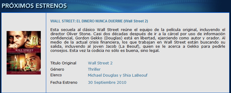 El Dinero no Duerme. (wall street II)