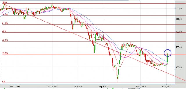 Buen punto californian...supongamos que tenemos un 20% de ganancia y llega a $ 400 el lunes, vendemos y hacemos una buena utilidad, no obstante el mercado nos sorprende el martes con una nueva alza a $ 415.- que fue donde se dio cabezazos en octubre del año pasado.... el mercado nos sigue dando sorpresas y sube a $ 450, ya usted quedo fuera de esta fiesta ( no olvide que estuvo sobre los $ 680 hasta julio del año pasado por lo tanto tiene mucho que recuperar en terminos relativos). Por otro lado se esta quedando sin competidores en el segmento donde opera....