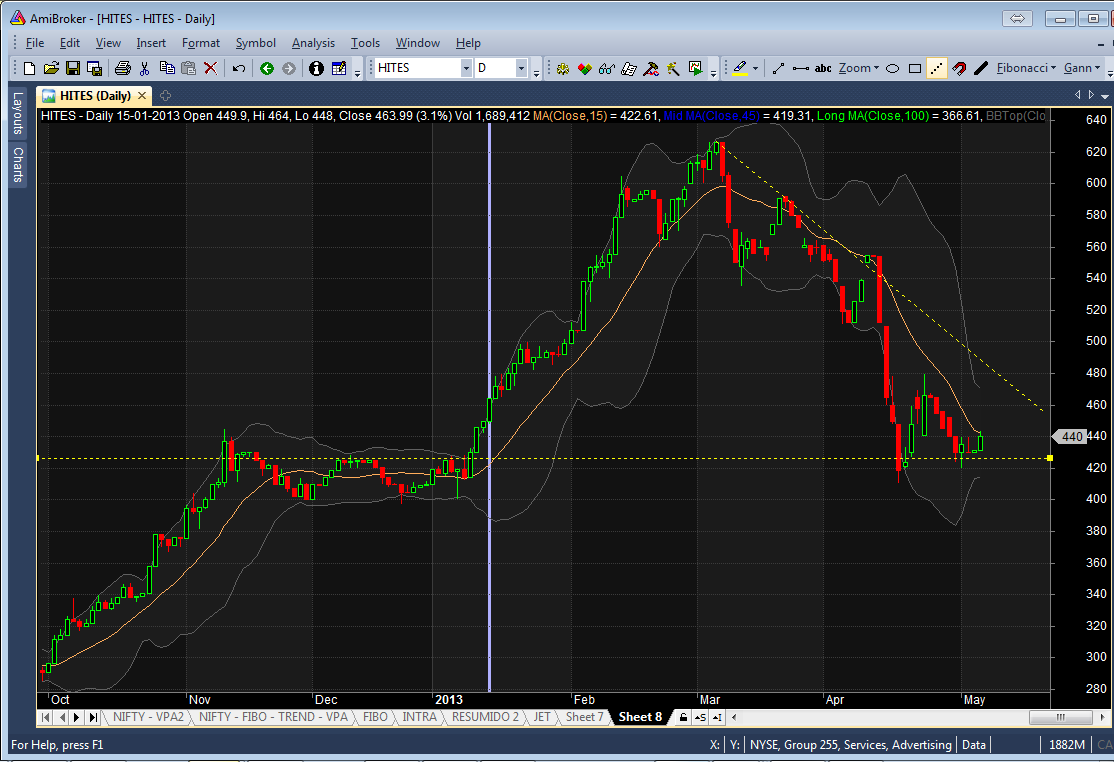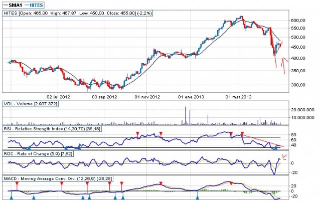 Actualmente mi sistema de trading me alerta de que hay altas probabilidades de un rebote en los papeles de Hites, que cayó fuerte tras la demanda del SERNAC en torno a cobros abusivos, sin embargo, no hubo tanto pánico como el caso LA POLAR, por tanto, de momento no tendría la misma magnitud, será muy importante saber sus próximos EE.RR. Pero de momento podría rebotar y podría llegar al techo de su directriz bajista de mediano plazo en torno a los $480-470.
