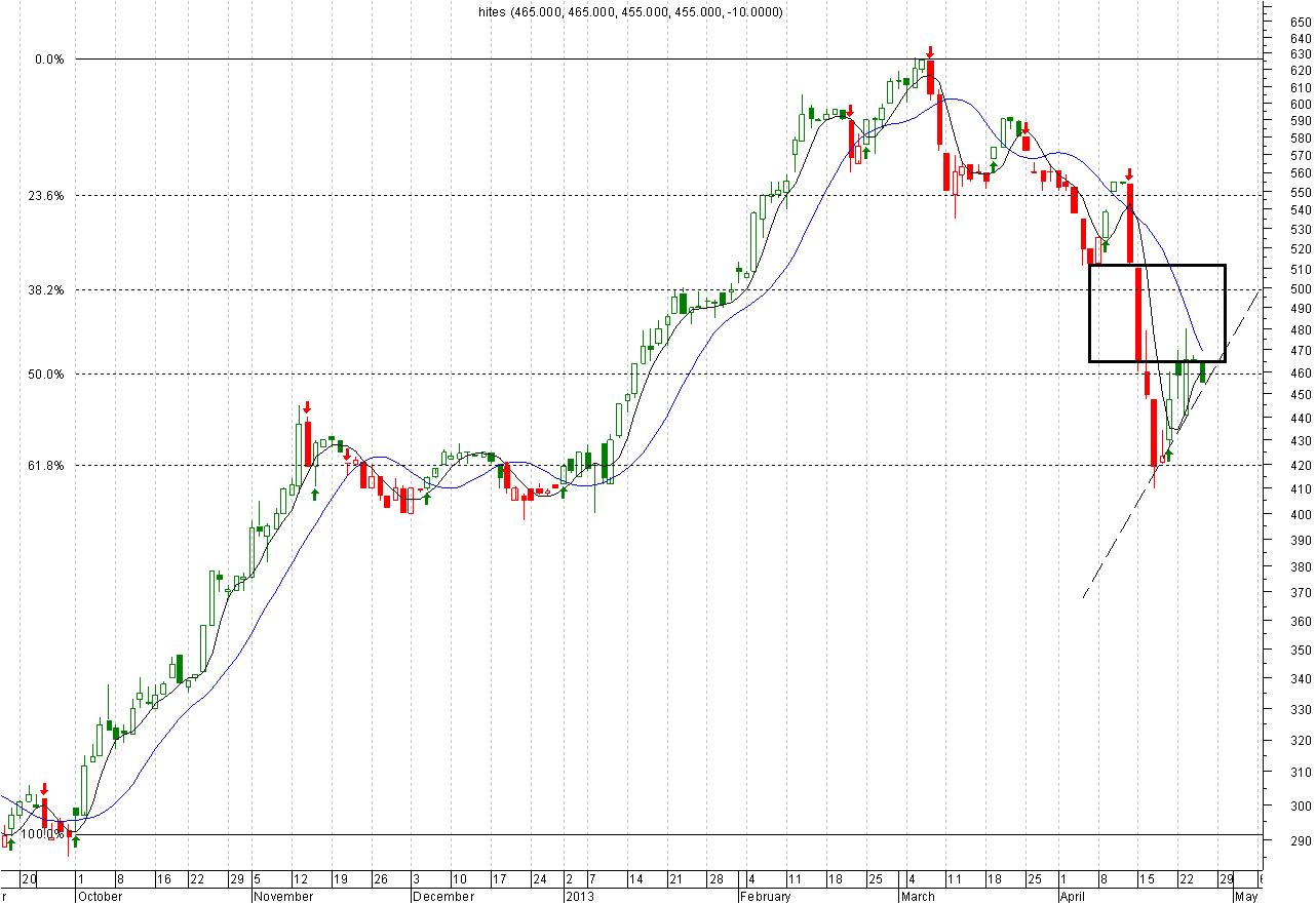 Veamos como cierra la semana el dia de mañana. En la grafica se aprecia que sobre 465 no habria eventual resistencia haata los 510 (Rectangulo negro)