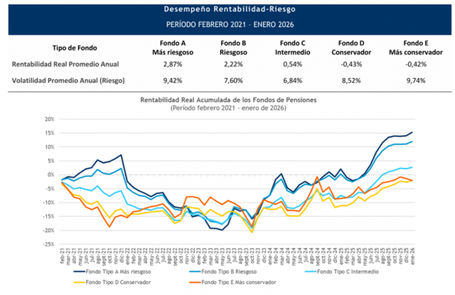 Recientemente, la Superintendencia de Pensiones publicó un análisis comparativo sobre el desempeño de los multifondos en los últimos cinco años, evaluando la relación entre rentabilidad y volatilidad (perfil de riesgo).