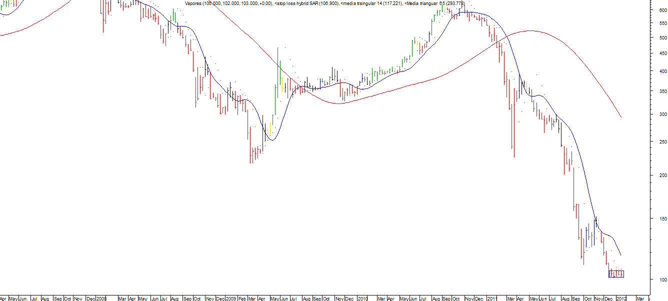 O sea EUROAMERICA dice que Vapores subirá en próximos meses (12 meses?) a mas del DOBLE del precio mas alto observado en los pasados 24 meses. Y ello en 2012, momento en que el mundo entra en recesión.