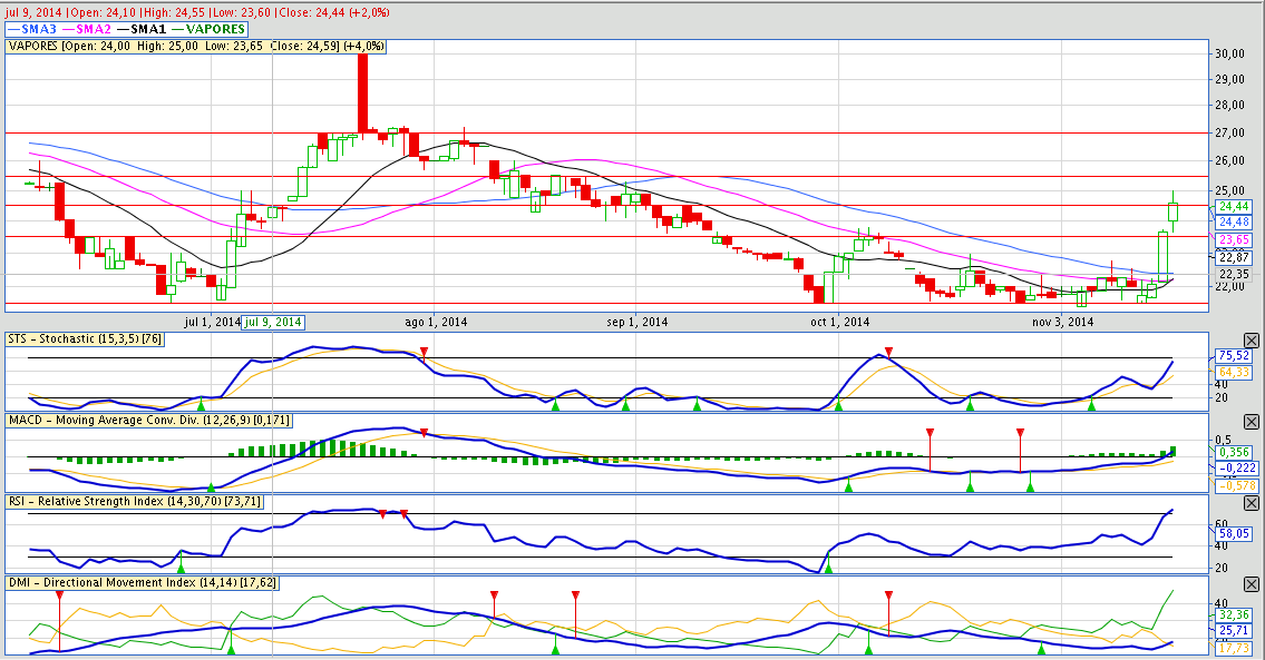 Paso los 24 con volumen y la pendiente alcista ha sido agresiva. No sé ustedes pero todavía tengo la sensación que alguna información nos falta aquí.http://www.chilebolsa.com/foro/uploads/ … 231214.png
