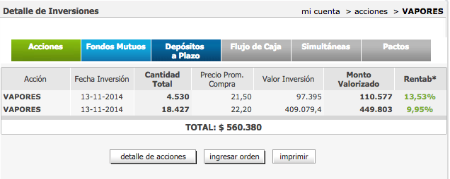 La segunda, porque se trata de un monto ultra razonable, si hubiera sido un monto alto lo hubiese omitido porque no es mi onda cachetonearme (en todo caso, nunca he transado un monto alto). Además, si lo traducimos en utilidad (descontadas las comisiones) en el hipotético que hubiese vendido hoy -al precio de cierre-, estaría ganando aprox sólo unas 40 luquitas).
