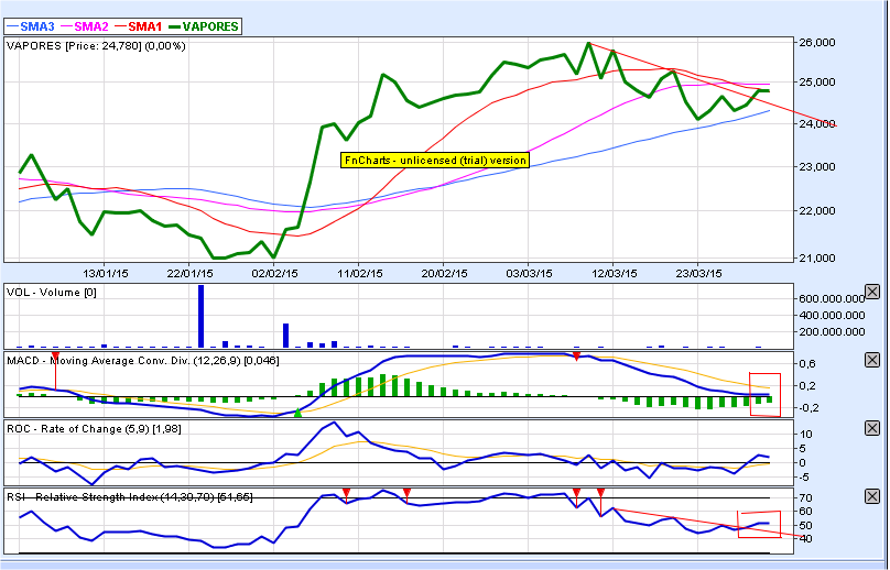 Además, está en un canal entre 24 y 26. Si pasa 26, quizás se vaya hasta 28, sino, aún se podría salir cerca de 25.5. (el cierre de hoy fue 24.8)