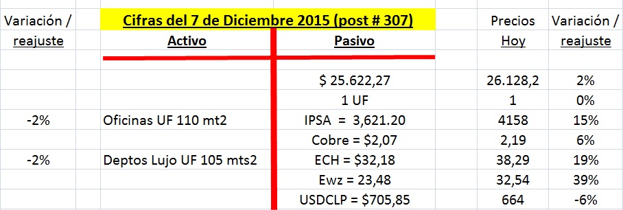 Me gustó tu ejemplo de mas arriba del post #307, lo tomaré como referencia para una vivienda de 3.000 UF valorado al 07-Dic-2015 para dos activos, eso si me quedaré con el *Activo 1, veremos como me va en 2 años (2017).Valor vivienda de 3.000 UF.