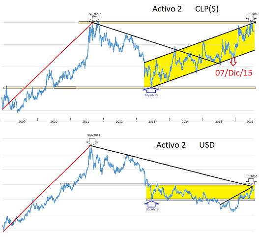 Aquí hay una comparación de mi Activo 2 comparado en $ v/s USD, eso si mi activo 1 pinta mejor.