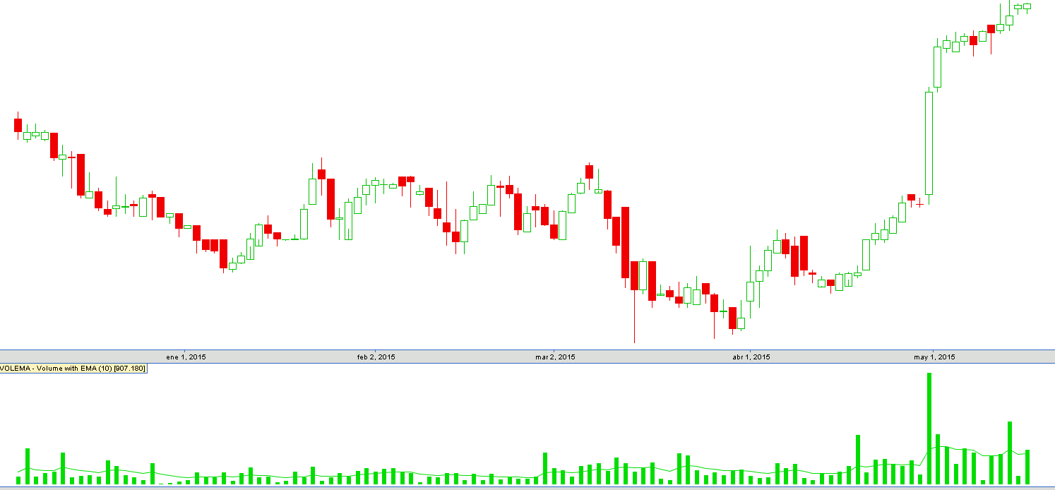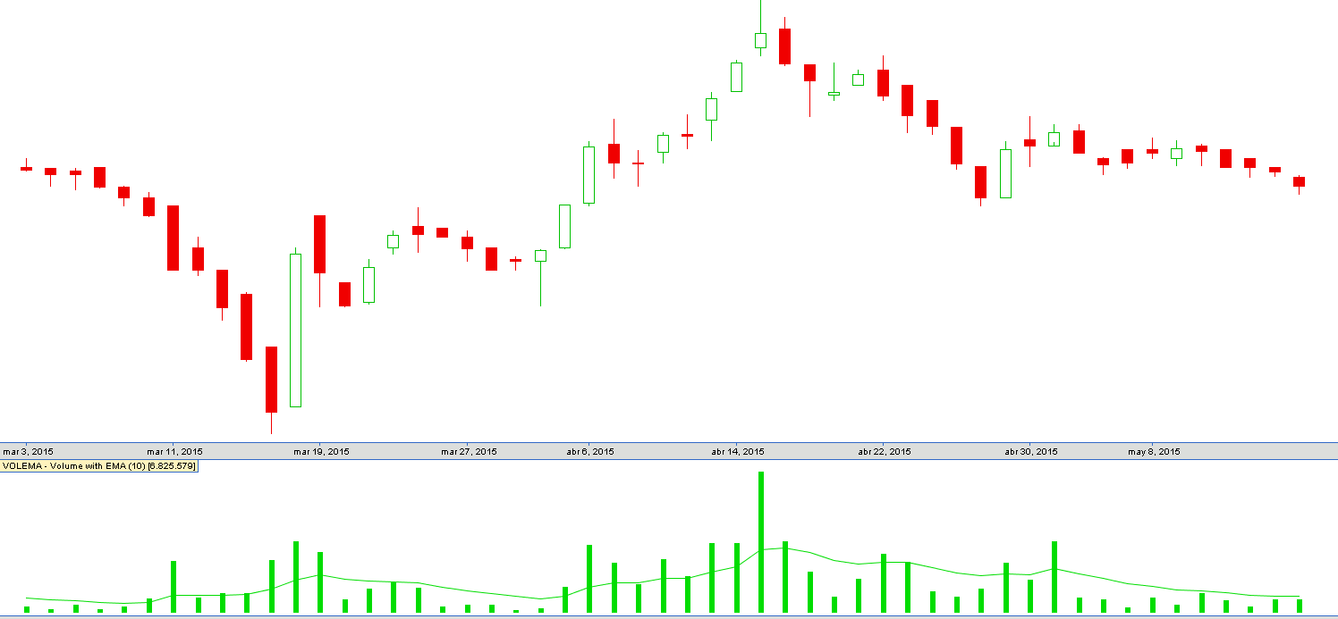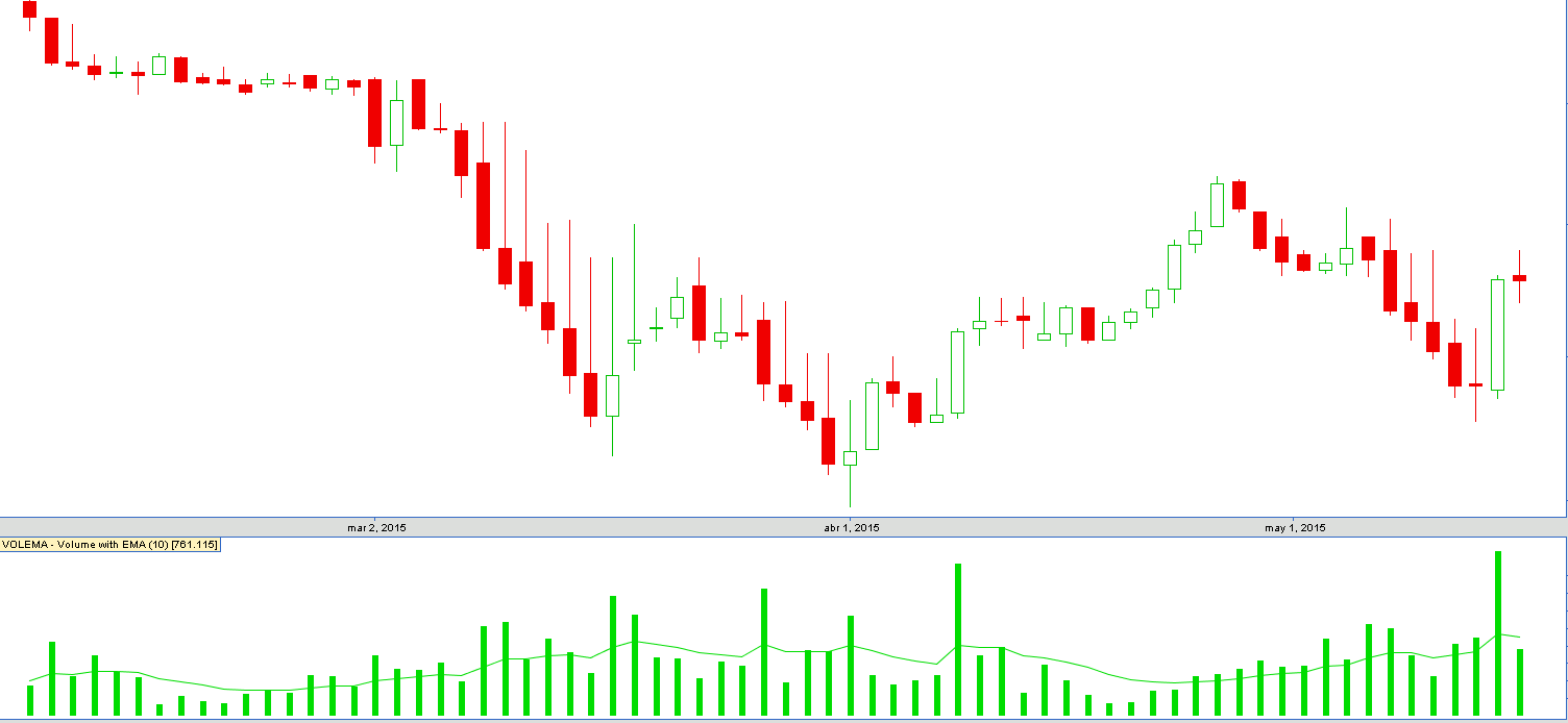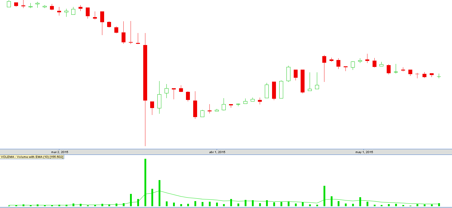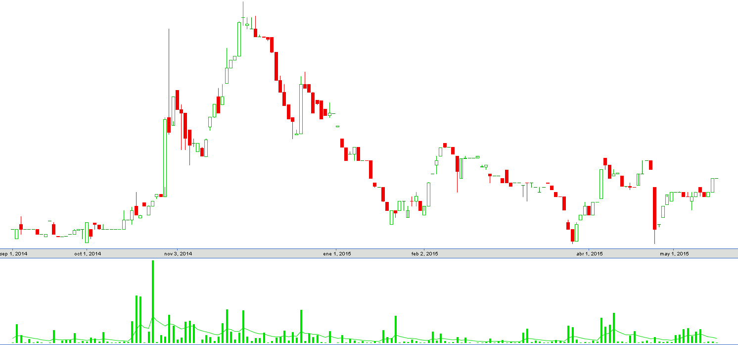 Tiene un soporte marcado, pero hace no mucho intento escaparse al alza y fue frenado por un HCH que le hizo volver a su lugar, nuevamente sin bajar más allá del soporte que tenía. Creo que seguirá por un canal pues también ha marcado techo últimamente, así, creo que sería bueno comprar en el CP hasta que llegue a ese techo y luego evaluar si sigue subiendo o bien vender hasta que vuelva a bajar al soporte que ha tenido últimamente. Más allá no creo poder aventurarme, aunque si tuviese que decir algo, como ha habido volumen sobre todo en las alzas, creo que irá hacia arriba.