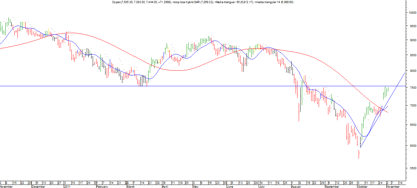 chocando en $7.500, pero la veo a CP $ 8200, si repite tendencia (ini oct11.), no subo gráficos.,