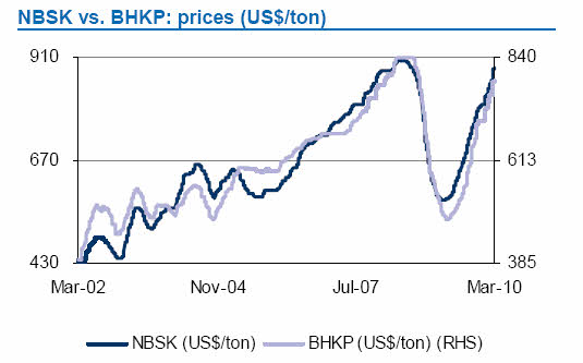 desde dic 99 a a hoy el precio mas alto de celulosa registrado es de 906US$...no se, creo que 990 es muy optimista.