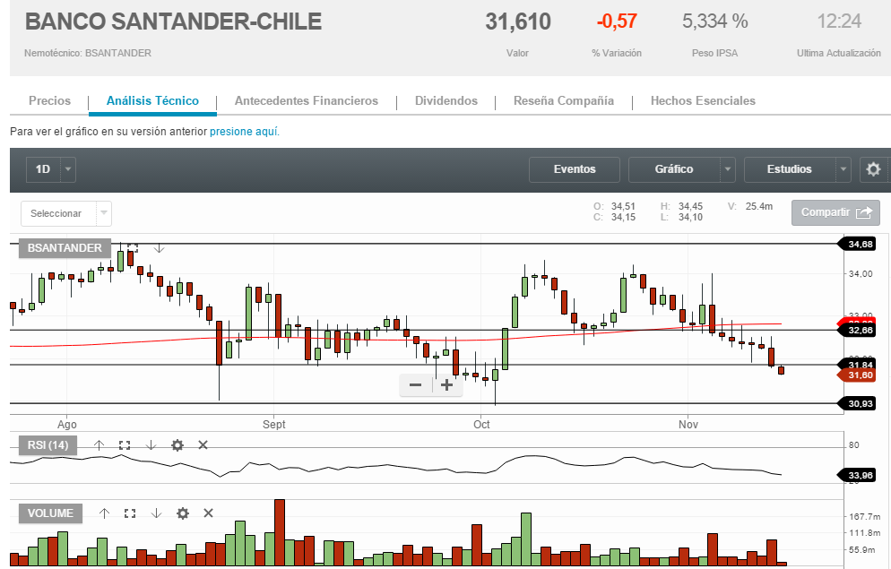 Ahora desapareció BCI y apareció Bsantander entre las 10 más transadas