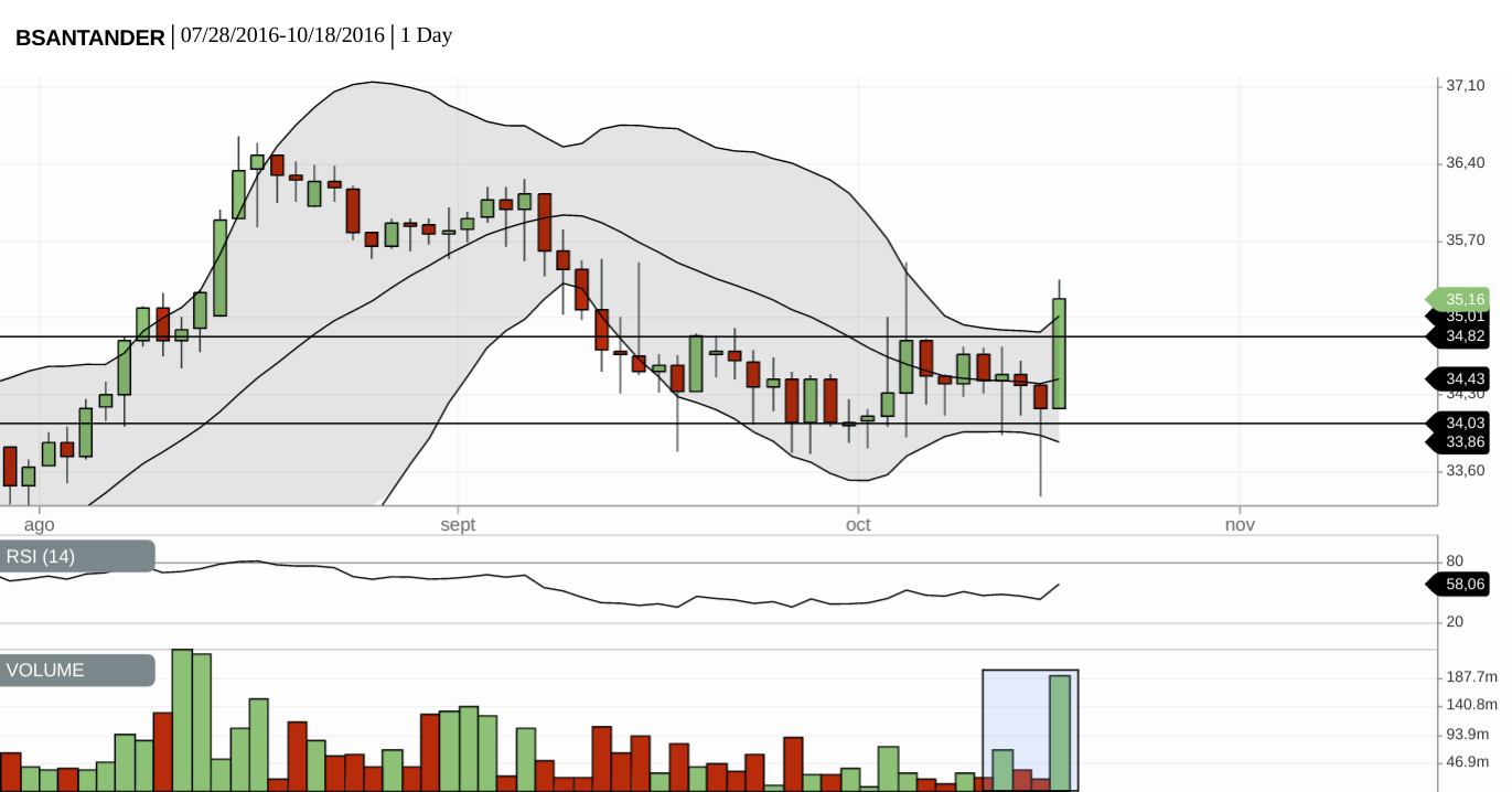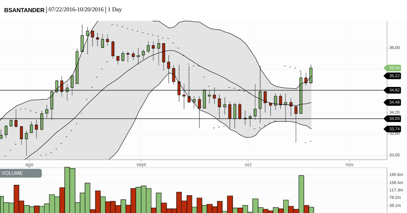 Me llama la atención la fuerte baja de BSAN el día de ayer (-4,31%). No hay nada relativo a ex-date de dividendo, ni que ayer haya salido de alguna cartera recomendada (la última vez que la sacaron de cartera recomendada fue el 20 de Mayo). El ADR bajó apenas -0,66%.