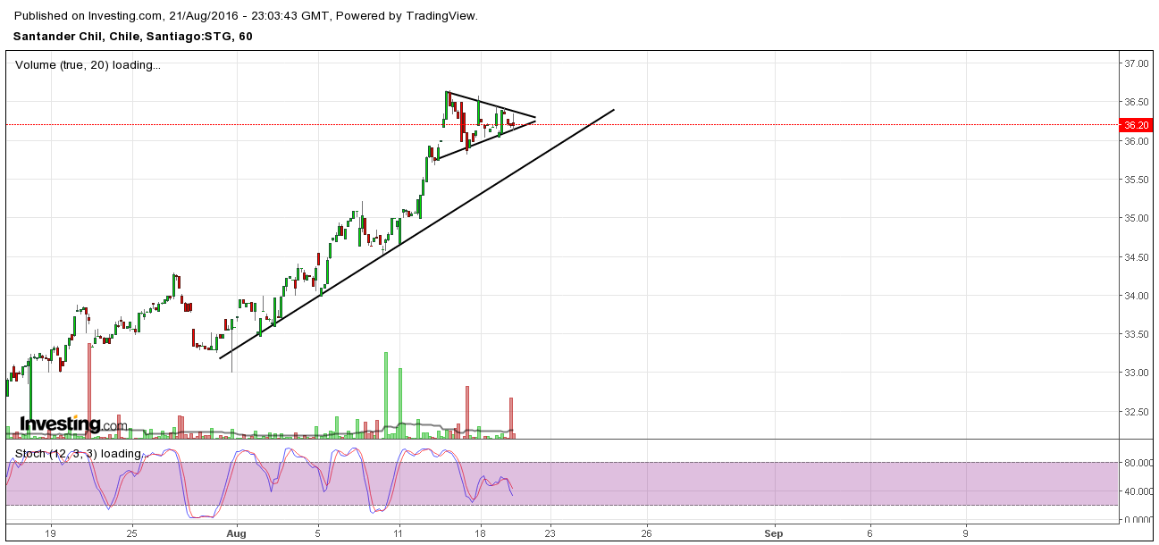 Excelente movimiento el que ha desarrollado hasta ahora este papel. Se ha detenido y avanzado en los lugares esperados. Seguir observando a ver si la fuerza es suficiente para llegar a la parte superior del canal.