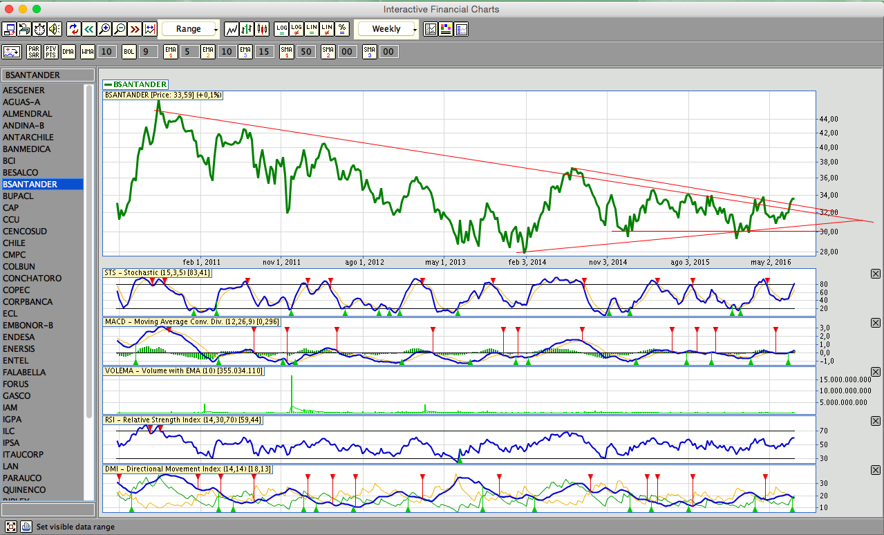 Aquí otro dilema: tomar utilidades o esperar un poco más de desenlace...supero la linea de tendencia bajista de LP y se enfrenta a su resistencia de 34 y fracción aprox. Precio sobre las medias de 50,100 y 200, cruce positivo. De aquí a los 35,36 y 37 resta un buen trecho pero quizás valga la pena jugar un par de cartas más y no salir aún.