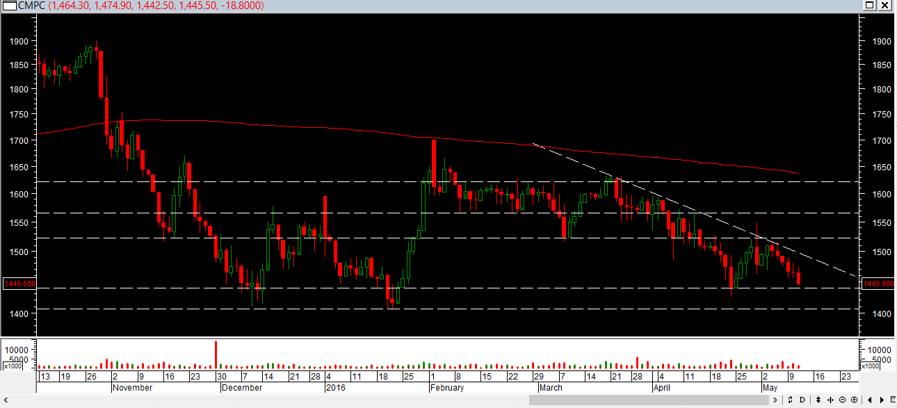 Está resistiendo de caer de los 1.400.- pero la punta compradora la veo flojita.