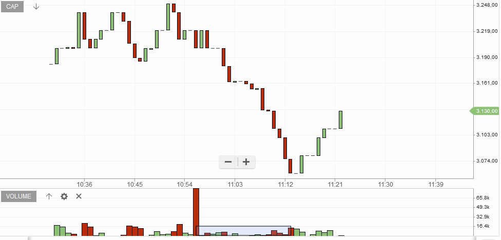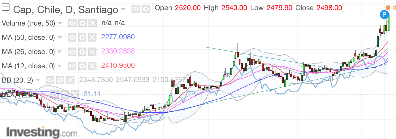 Está claro que el SLX actúa como catalizador de CAP. Ahora último los movimientos de CAP han sido más exagerados que el SLX (vean cómo se ha separado las velas de la curva celeste), yo creo porque CAP está demasiado sub-valorado - como un 40% del valor libro ! - y ahora está poniéndose al día.