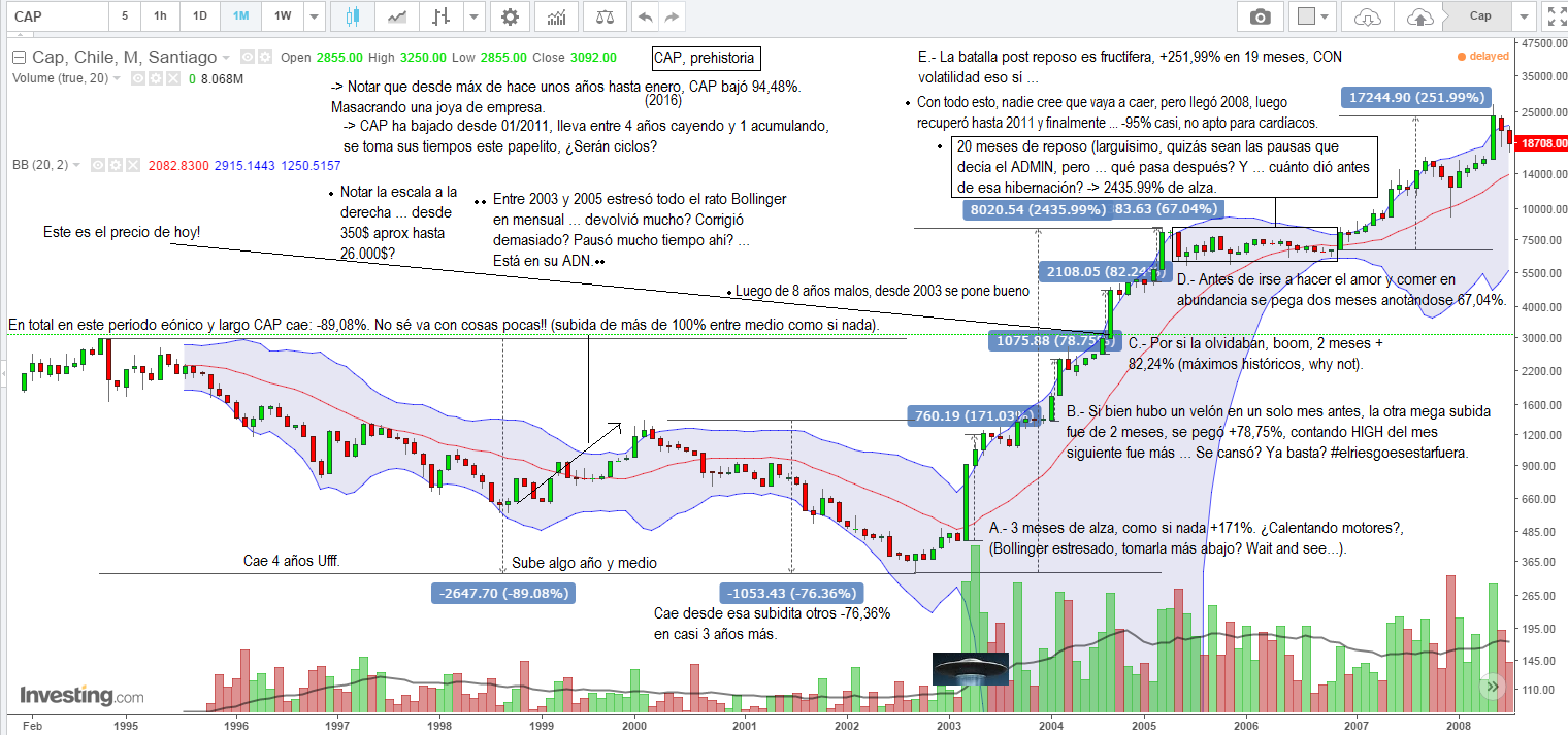 2.- Prehistoria de CAP, (sorry lo desordenado del monito, se me fue la mano con los comentarios) y upsides), bajada larga y dura en los 90' y comienzos 00' y posterior subida increible desde 2003.