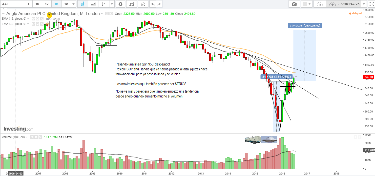 Patrón común? Algunas más que otras, pero desde comienzos de este año que el perfume parece tener otro olor. Alguno que otro mes malo entre medio (ni tan malo comparado con algunos meses de alzas gigantescas), pero que no molestan mucho y que en unos casos son eventualmente la formación de una figura tipo CUp and Handle, mostrando quizás la fortaleza de éstas y el posible y definitivo final de la tendencia bajista/acumulación que llevaban por harto rato.