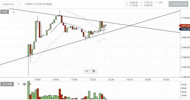 Pero estuvo sobre $ 3.600 casi todo el día, solo la ultima media hora bajo. Se transaron mas de $1.000.000. de acciones.