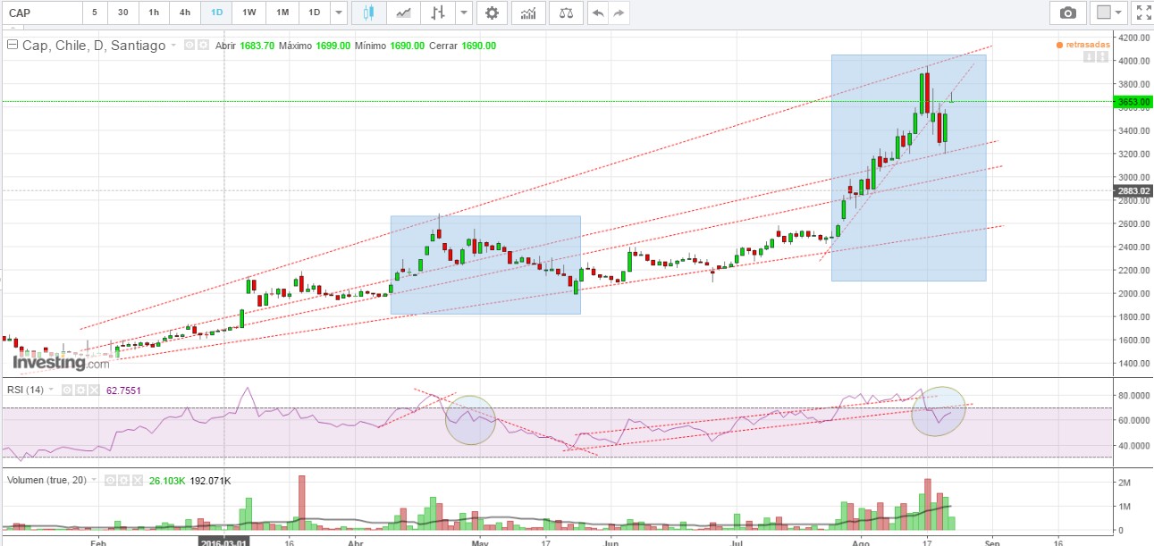 Considerando el ADN del papel, tanto en subida, como en bajada, las correcciones duran varias semanas. Se aprecia aplicando un simple Zig Zag los últimos años.
