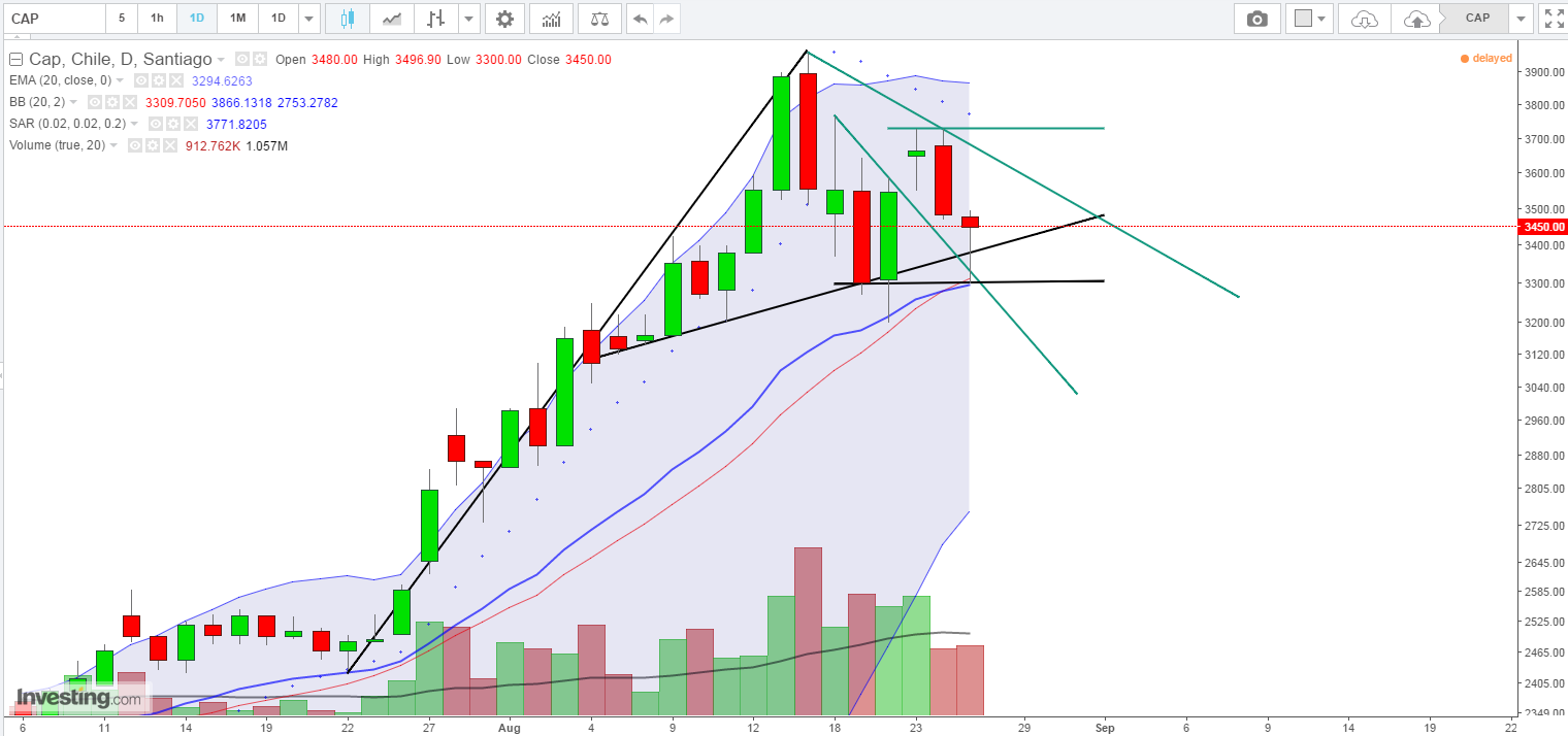 Con respecto al límite superior si estuviésemos en pausa, en un canal o con una resistencia o nivel a pasar para seguir el alza eventualmente, me queda menos claro cuál sería que el inferior donde ya estoy candidateando los 3300.