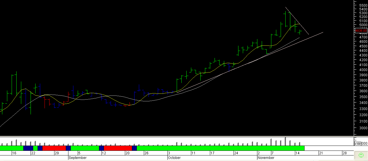 Pareciera que irá a probar nuevamente el soporte en la media, en torno a los $4.800.-