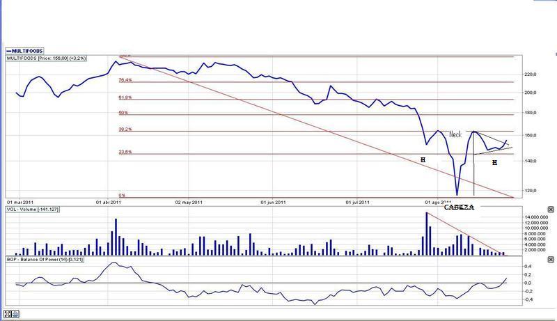 PD: Para los foreros nuevos, el HCH es una figura de cambio de tendencia más importante por la fiabilidad que proporciona como por el significado de la misma, que es un cambio de tendencia a largo plazo. Señala un final de ciclo ya sea alcista o bajista. En el caso de multi, fin tendencia bajista.