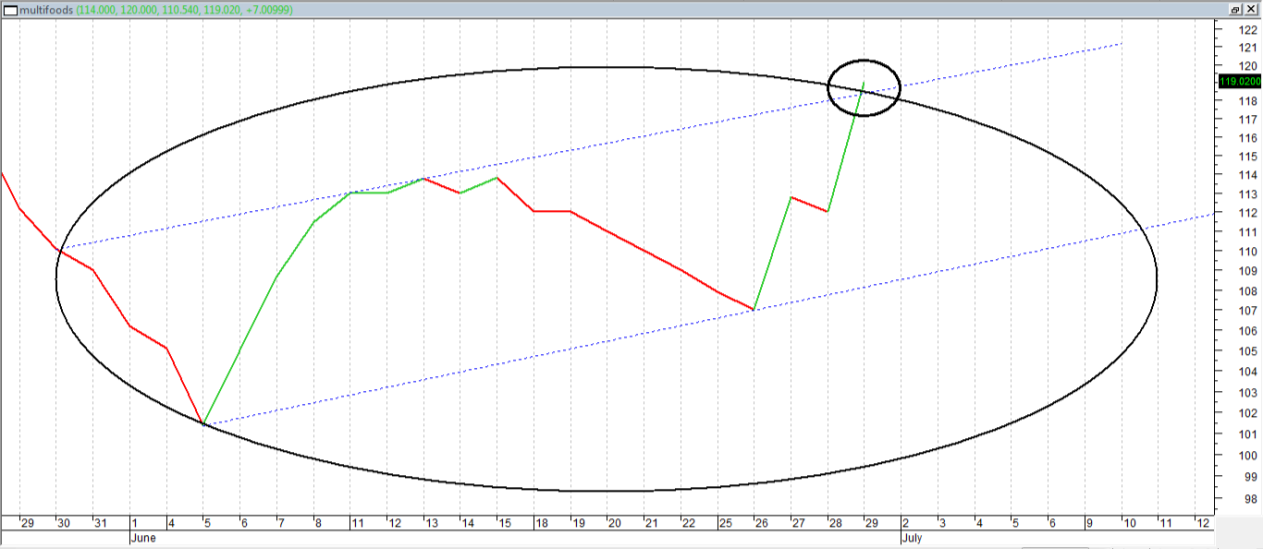 Junto con saludarte, tu sabes cuanto tiempo esta acción estuvo en canal equilibrado, te pregunto esto ya que ayer me puse ver este valor y si confirma el mercado el martes seria un papel muy interesante para meterse ya que a más tiempo sin acción (canal latera) puede ser una alza considerable.