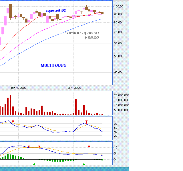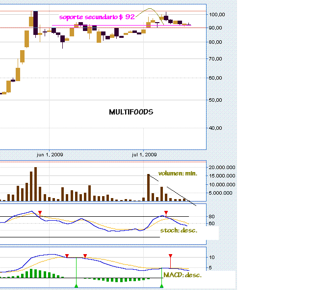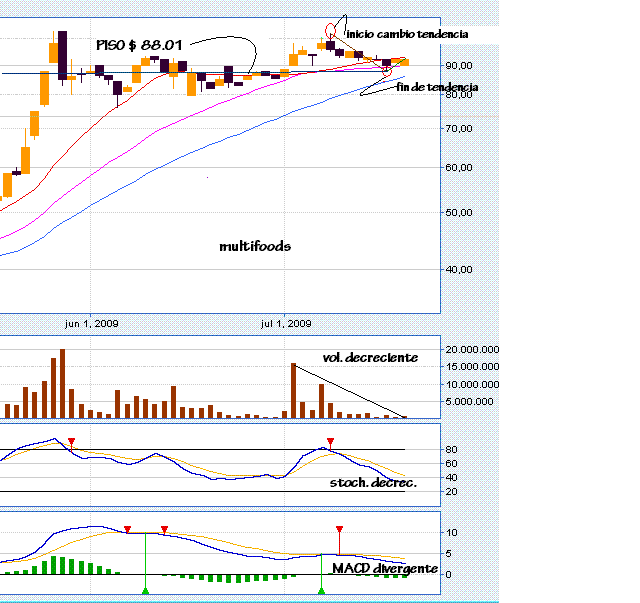 La tendencia BAJISTA iniciada en $ 103 y terminada en $ 88.01, posibilita el inicio de una tendencia en formacion desde el