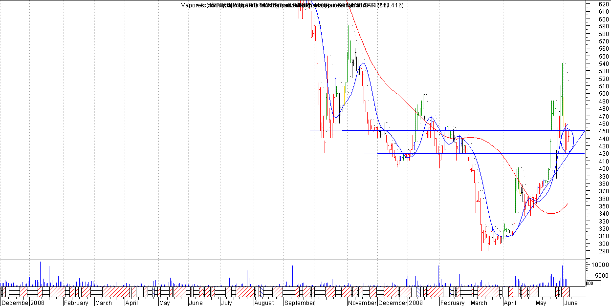 Vapores es una empresa que la ha pasado mal durante la crisis, sin embargo lo más posible es que salga viva de esta situación gracias a tres gigantescos aumentos de Capital(en relación al tamaño de la empresa). Como dije antes las alzas y bajas de vapores dependen de la evaluación de la renovada sanidad financiera de la empresa V/S la gran disolución de participación de los accionistas.