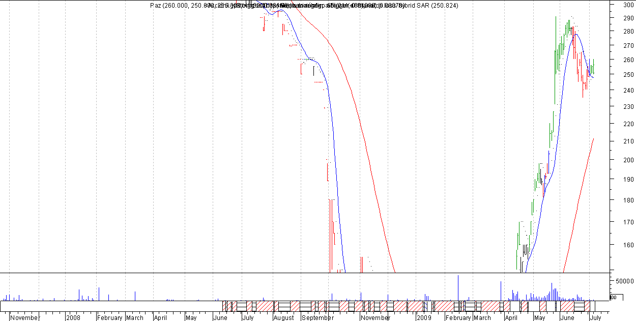 La última vez que hablamos de Paz dije que era el sueño del analista técnico y que era un momento complicado para el reingreso. Lo dije cerca de lo que resultó ser el top de la figura. Como verán el gráfico tiene cierta similitud con el gráfico anterior, el del ipsa, esto por supuesto pasa todo el tiempo y los alerta de que si el mercado elige funcionar en modo bear, es poco lo que pueden esperar de Paz. Sin embargo en este momento no se ve en mal pie. Quien quiera ser agresivo puede mirar el desarrollo desde dentro, pero es necesario, tal como se dijo en el post anterior, ajustar muy bien los stops por si este nivel de precios no aguanta. En términos estrictos aún estamos en tendencia, pero está en veremos si logra hacer un nuevo máximo. Si miran la situación de salfacorp y socovesa, verán que parte del entusiasmo ha pasado. El volumen tampoco ha regresado, y aunque esto no ha sido requisito sine qua non en otras salidas de correcciones, en este caso daría algo más de seguridad de estar en una posición con posibilidades. Todo esto son consideraciones que vienen solo del estado del mercado y la situación de Paz. Si miran lo que dicen los indicadores típicos no verán nada negativo, ni siquiera el adx ha salido de la zona de tendencia... hay que tener en cuenta que las consideraciones las tiene que aplicar uno y "traducir" la situación para mirar los indicadores con la óptica correcta.