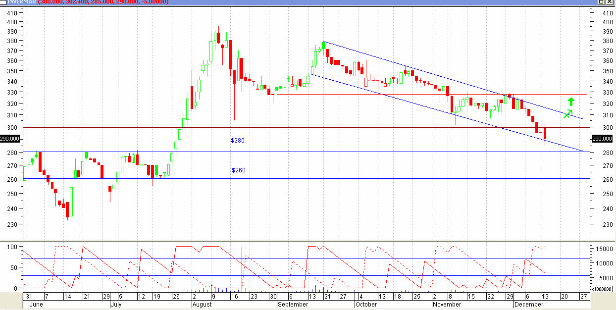 Bueno como dije antes cuando se detenga la caida y retome el alza estare IN y asi lo hice. Ya esta pronto a terminar el 4to trimestre (el de mayor produccion, junto con el 1er t.) y creo que las cosas mejoraran de ahora en adelante. Me gusta mas el mix productivo de invermar junto con el aumento de produccion que esta proyecta versus multi (aunque igual In en multi). Espero comer un buen salmon ahumado para navidad.