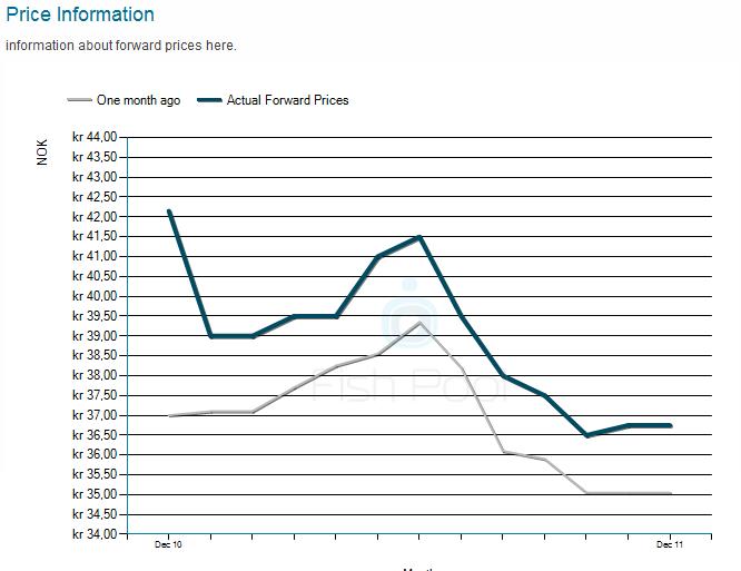 Respecto de lo de Urner Barry se aprecia una tendencia de precios similar a la de Noruega (Fishpool) ... por lo que reafirma lo antes señalado; incluso en Fishpool se ven los Forward, que claramente respecto del mes anterior han subido tb. La tendencia 2011 es clara y muy buena para la industria en términos de precio...