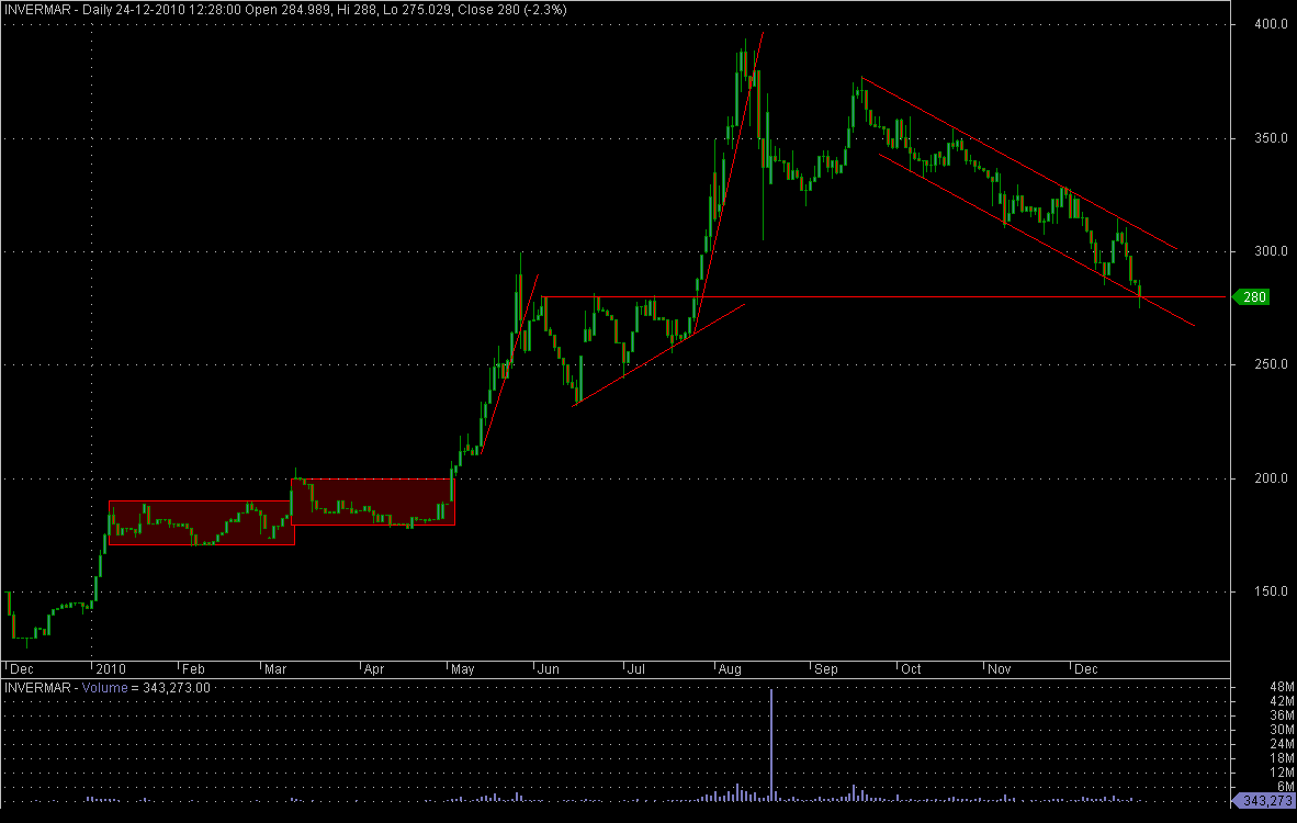 Bueno, a mi los dibujitos, me dicen que está en clara tendencia a la baja y que el 24 cerro donde puede haber un rebote, pero es un rebote que no es confiable dada la tendencia a la baja, por lo cual, si es que rebota en los 280, debería pasar los 310, para empezar a creer que está rompiendo su LT bajista.