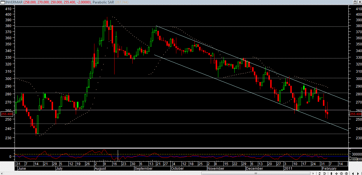 Errandu, cuando sobrepase la linea superior del canal bajista sera el momento de hablar de ingresar al papel siempre y cuando el mercado tambien se recupere.., pero para que entrar antes, porque como dije antes.. me parece que no hay ningun premio por mantener un papel q baja. Ahora invermar baja igual q la mayoria de los papeles, asi q tranquilo. Por mi parte me mantengo atento, cuando sea el momento de ingresar.