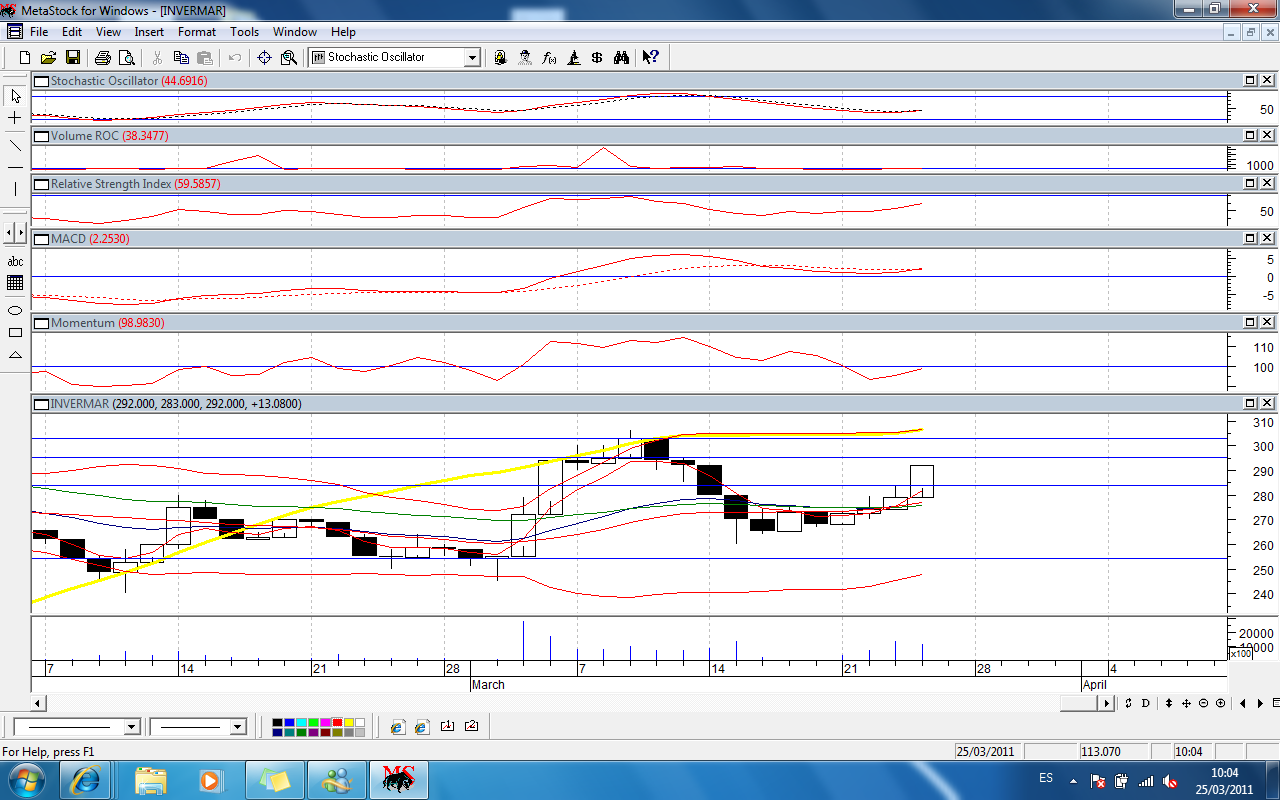 Me gustaría saber la opinión de los que estan en Invermar, ya que esta accion siempre se mueve casi similar que su compañera Multifoods pero esta ves no ha sido asi, desde el 2 de marzo, considerando mínimos y máximos hasta la fecha son: