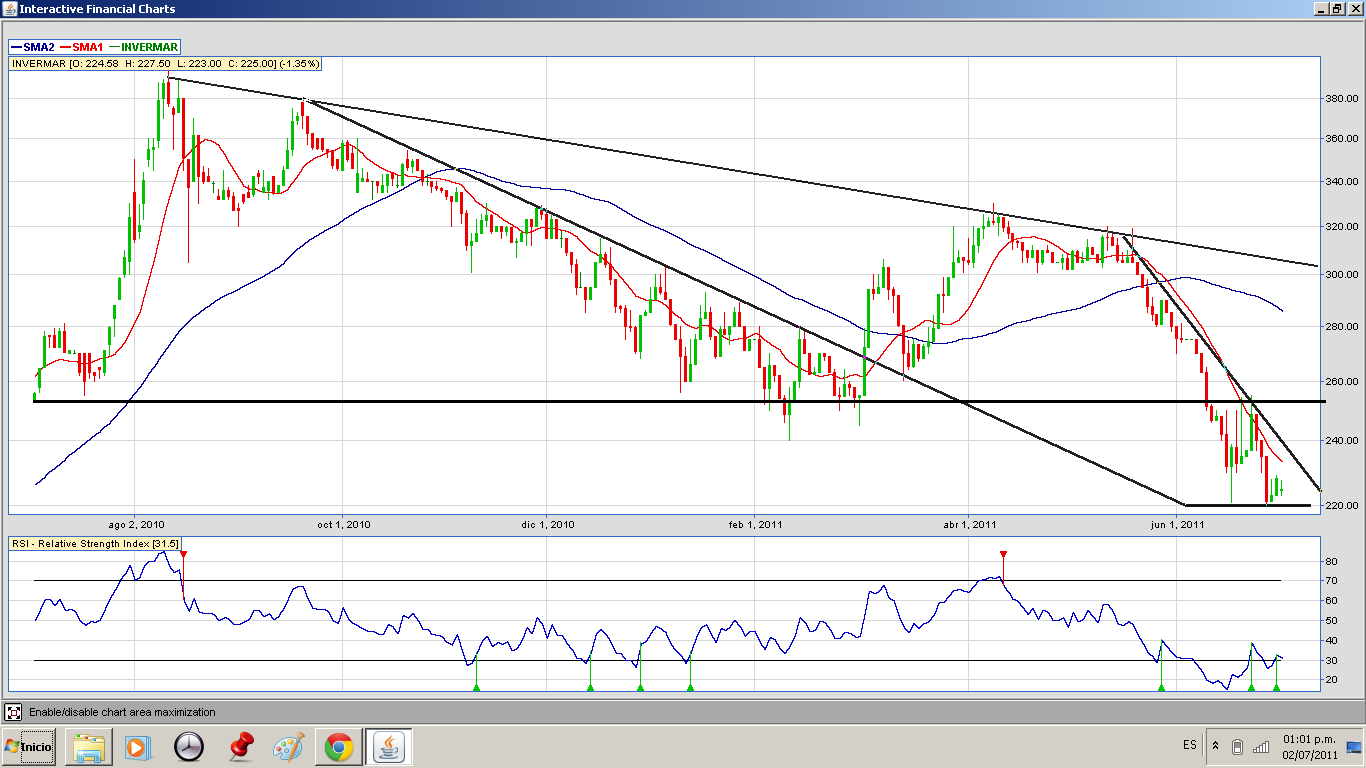 2.- El RSI, se ve estable en los 30 puntos, ésto indicaría que la acción está sobrevendida, sin embargo un indicador por si solo, no es significativo.