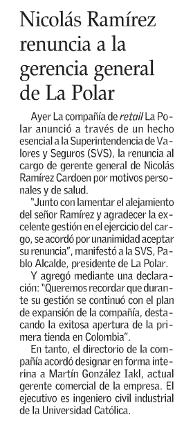 como dato, ayer pase por la polar del ahumada y de p de hurtado y ambas tenia harta gente comprando, a su vez ayer los proveedores comentaban que seguirian enviandole productos a la empresa ya que no han tenido problemas con los pagos