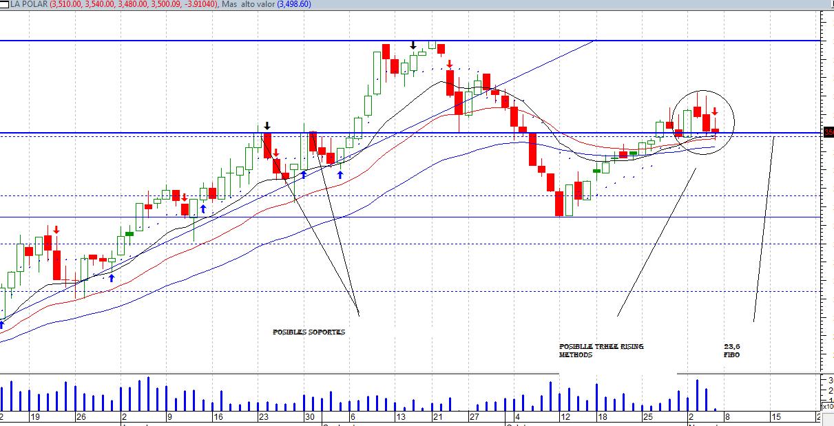 Una miradita pa calmar los animos. Tenemos varias posibles soportes donde la polar podria parar su decenso, por el momento vemos que la accion esta luchando fuertemente en torno a los 3500, veamos por que.