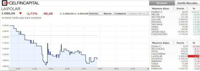 En el caso de Cenco y La Polar, tienen inversiones en países con un altísimo potencial de crecimiento. Por su parte Chile ha recuperado y seguirá recuperando puestos de trabajo, invitando a mejorar el resultado de estas y otras empresas... Quienes tengan apuros económicos, vendan para que los peces grandes entren a buen precio!...   Por eso bajan los papeles, nada más...