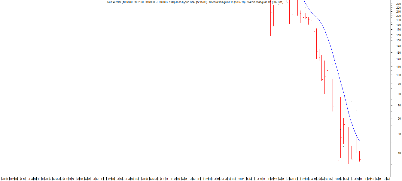 Joseph escribió:Octubre siempre es del terror para todas. El lunes va a repuntar sobre su base triple tope y luego alcista con la emision de los bonos convertibles