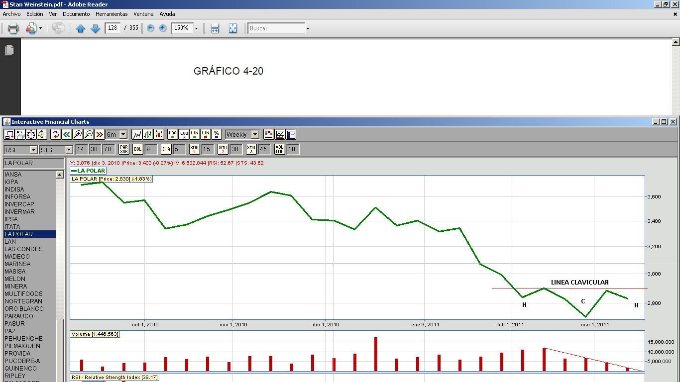 La gente tiende a pensar que las cosas no bajarán.. es un optimismo que es valedero, cuando hay una tendencia, pero cuando no la hay es vacío... a veces es bueno ver las cosas con otros ojos... cómo se ve La Polar si hubiéramos estado haciendo venta corta? Piensen en esa tendencia a la baja, zona de consolidación (canal) y rompimiento hacia arriba...todo de libro... una maravilla... (vean a vapores, ripley, etc, etc también)