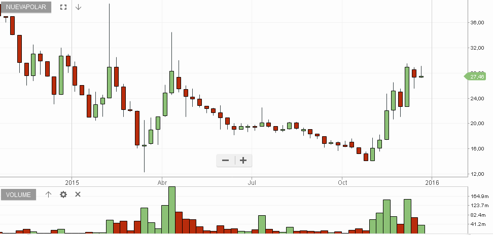 Mira el gráfico de Maragume, se ve un posible soporte en $25,5. Hay que estar atento a cualquier alza con volumen.